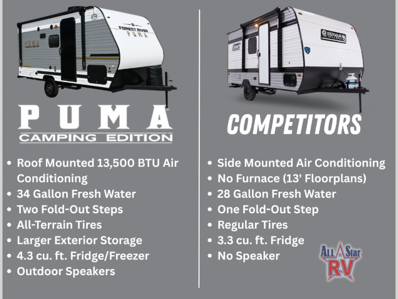 The 2025 Palomino Puma Camping Edition 122BHCE is more than just a travel trailer; it is a gateway to unforgettable experiences and cherished memories. Whether you're embarking on a weekend getaway or an extended road trip, this travel trailer offers the perfect balance of luxury and practicality. Embrace the freedom of the open road and the beauty of nature with the confidence that your Puma Camping Edition will provide a reliable and comfortable home away from home. Don't miss the opportunity to own this exceptional travel trailer and elevate your camping adventures to new heights.