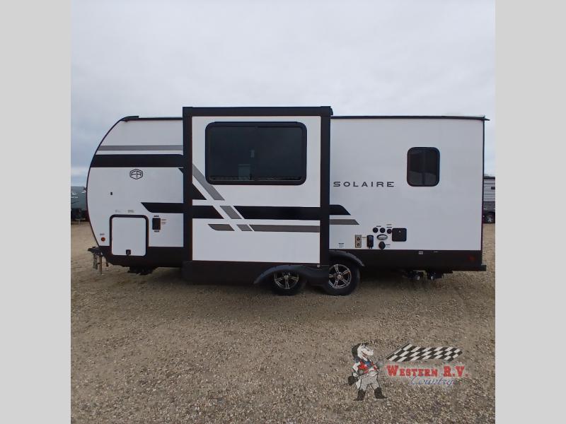 The SolAire 2085 BHS features one slide-out, which expands the living space to provide a comfortable and roomy environment. Inside, you'll find a well-equipped kitchen, a cozy dining area, and ample sleeping arrangements, including bunk beds, a convertible dinette, and a queen-sized bed. The thoughtful layout ensures everyone has their own space to relax and unwind after a day of adventure.