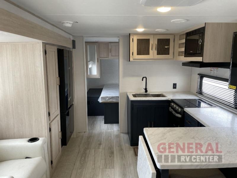 Inside, you'll find comfortable sleeping accommodations for up to six people, ensuring everyone has a cozy place to rest after a day of exploration. The well-appointed interior features modern amenities and thoughtful touches that make it feel like a home away from home. Whether you're cooking up a meal in the fully equipped kitchen or unwinding in the inviting living area, the Avenger 25MKB provides everything you need for a comfortable and enjoyable trip.
