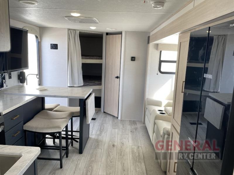 Step inside, and you’ll find a cozy haven that sleeps up to six people, making it ideal for family getaways or a trip with friends. The single slide-out expands your living space, offering a roomy interior where you can relax after a day of exploring. The well-equipped kitchen lets you whip up your favorite meals on the go, and the dining area is perfect for sharing stories over dinner. Plus, the modern amenities ensure you have all the comforts of home, no matter where you roam.