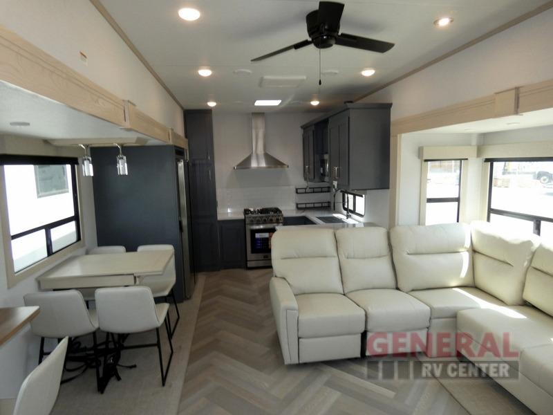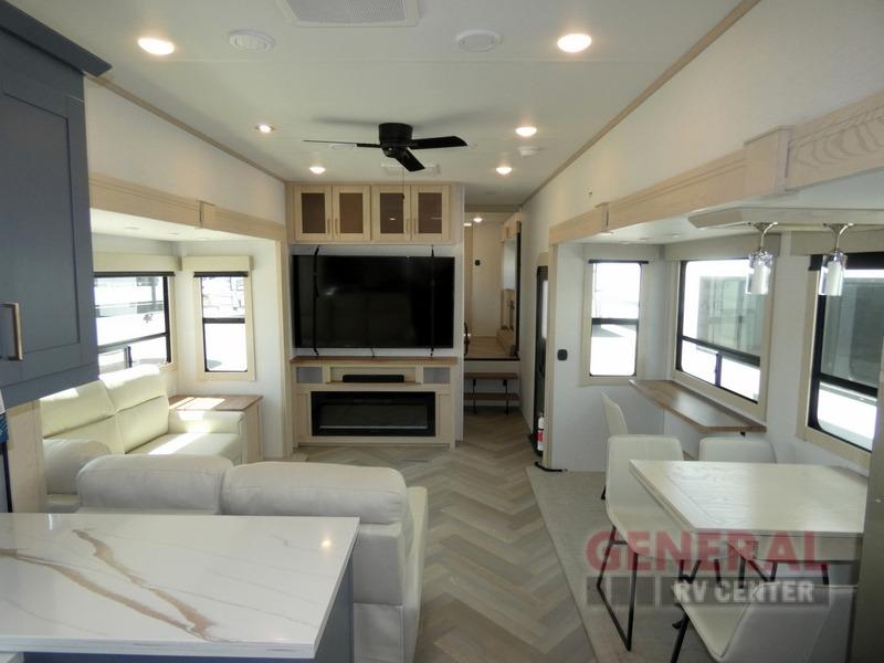 Measuring an impressive 37 feet in length, the Sanibel 3883LRWB provides a spacious interior that feels like a home away from home. With a weight of approximately 6,381 kilograms, this fifth wheel is engineered for stability and ease of towing, making it an ideal companion for both short getaways and extended journeys. The thoughtful design and high-quality materials used throughout the RV reflect a commitment to excellence and durability, ensuring that your investment stands the test of time.