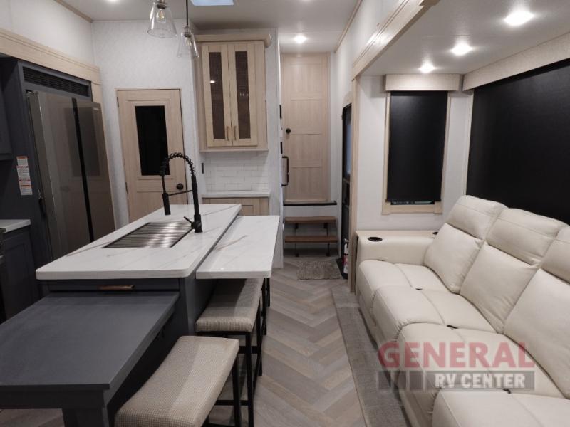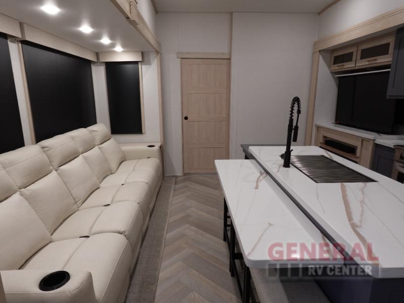 The Sanibel 3982DBWB features five expansive slide-outs, ingeniously maximizing the interior space to create a roomy and inviting atmosphere. It comfortably accommodates up to six people, making it perfect for family vacations or trips with friends. The thoughtfully designed layout includes a master bedroom, a cozy living area, and a fully equipped kitchen, ensuring that all your needs are met while on the road. The RV's robust construction, weighing in at approximately 6,498 kilograms, ensures stability and durability, providing peace of mind as you traverse diverse terrains.