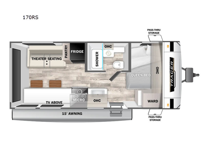 Inside, the Tracer 170RS offers a cozy retreat for two, making it the perfect choice for couples or solo adventurers seeking a peaceful escape. The intelligently designed interior maximizes space and functionality, featuring a comfortable sleeping area, a fully equipped kitchenette, and a stylish bathroom. Modern amenities and high-quality finishes create an inviting atmosphere, ensuring that every moment spent inside feels like a luxury experience. Whether you're preparing a meal or unwinding after a day of exploration, this travel trailer provides all the comforts you need.