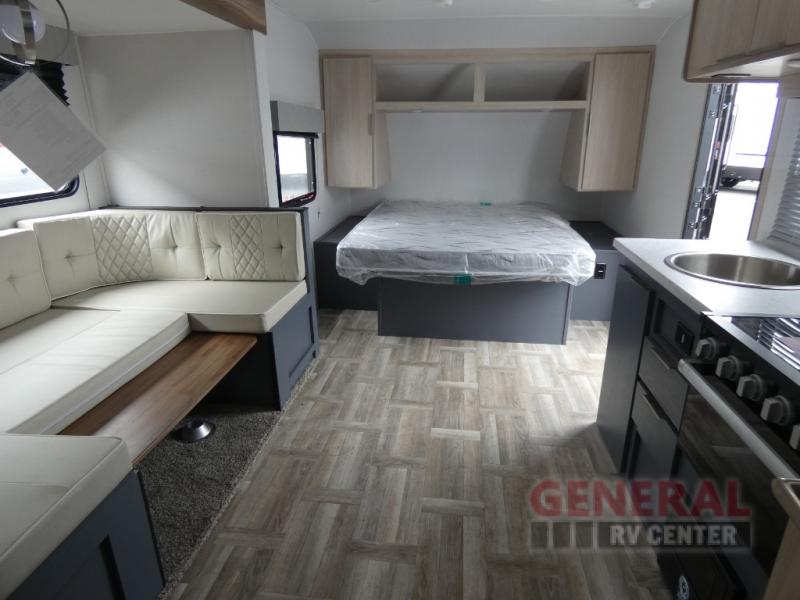 Step inside to find a thoughtfully designed interior that maximizes space and functionality. The single slide-out expands your living area, providing ample room for relaxation and entertainment. Whether you're planning a romantic getaway or a family adventure, this RV comfortably sleeps up to four people, ensuring everyone has a cozy place to rest after a day of exploration. The modern kitchen is equipped with essential appliances, allowing you to prepare delicious meals on the go, while the stylish bathroom offers the convenience of home.