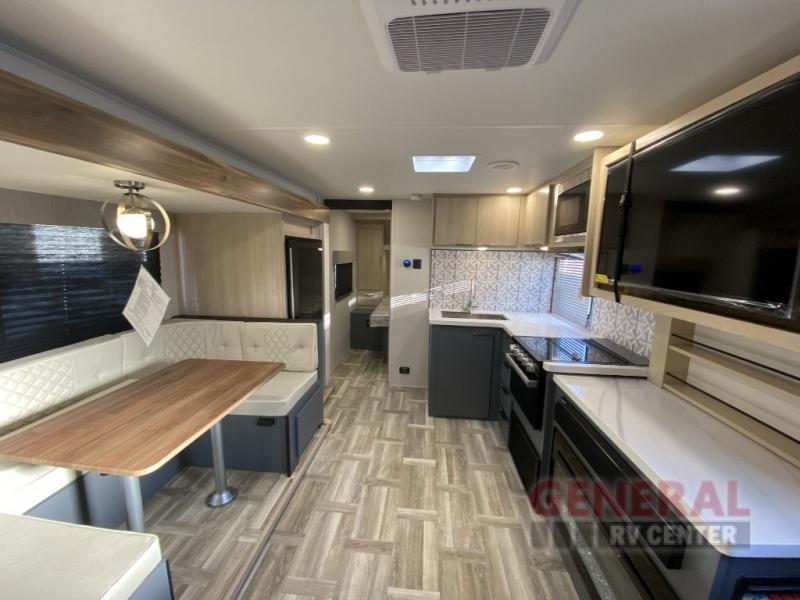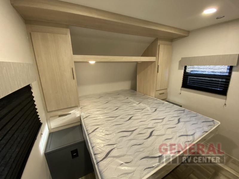 With a sleeping capacity for up to eight people, this travel trailer is ideal for family trips or group outings. The intelligently designed floor plan includes a cozy master bedroom, double bunk beds, and a convertible dinette and sofa, ensuring everyone has a comfortable place to rest. The modern kitchen is equipped with high-quality appliances and ample storage, making meal preparation a breeze, while the well-appointed bathroom offers all the conveniences of home.