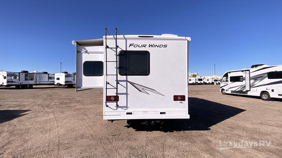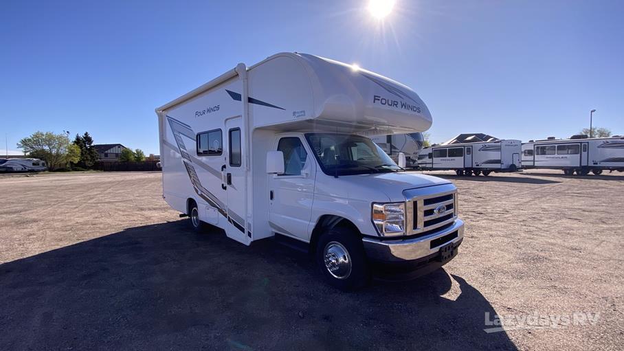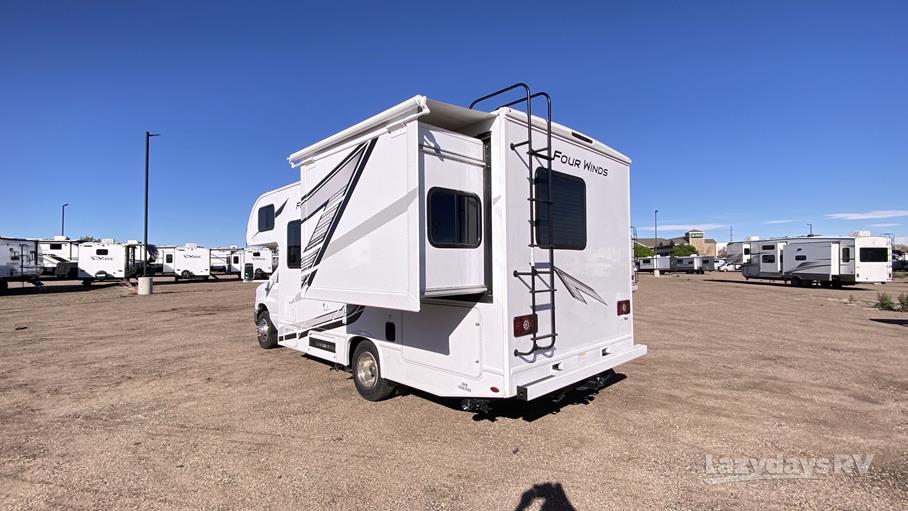 Weighing approximately 4,387 kilograms, the Four Winds 22B is built on a robust chassis that promises stability and durability on the road. The thoughtfully designed interior features a well-appointed kitchen, complete with modern appliances, ample storage, and a cozy dining area that transforms into a sleeping space. The master sleeping area provides a comfortable retreat, while additional sleeping arrangements are available in the overhead bunk and convertible dinette, ensuring everyone has a restful night's sleep.