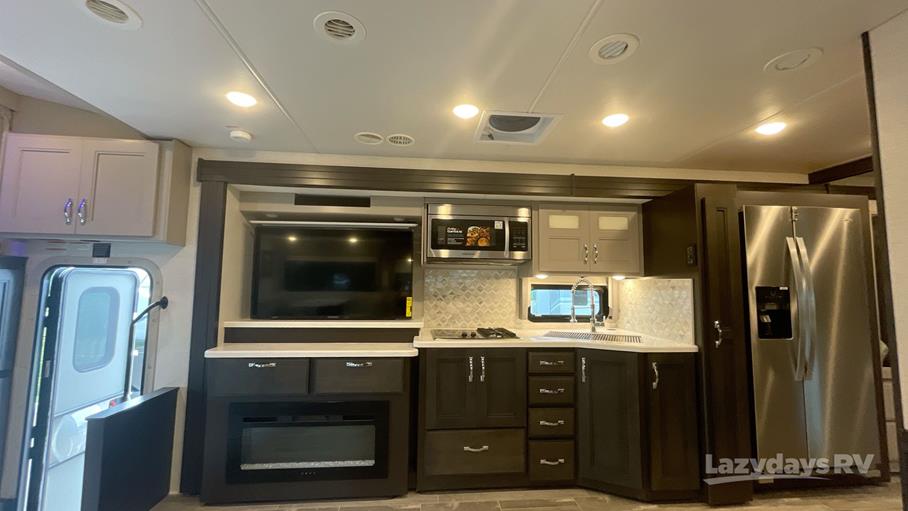 The Inception 38DA features three slide-outs that significantly expand the living space, ensuring you have plenty of room to move around and enjoy your journey. Designed to sleep up to four people comfortably, this RV is perfect for weekend getaways or extended road trips. The thoughtfully designed interior includes a fully equipped kitchen, a cozy dining area, and a luxurious bathroom, ensuring you have all the comforts of home wherever you go.