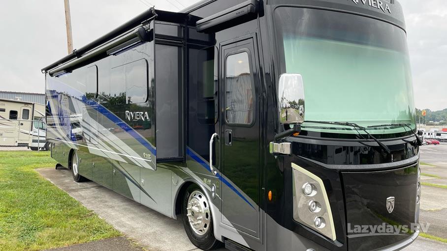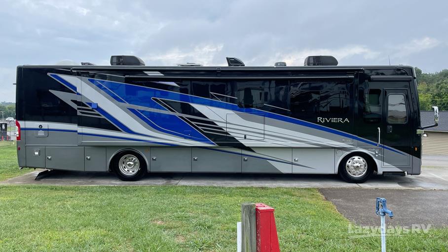 Measuring an impressive 32 feet in length, the Riviera 38RB features three slide-outs that significantly expand the living space, ensuring you and your family can relax in comfort. The RV comfortably sleeps six, making it perfect for family trips or getaways with friends. Inside, you'll find a beautifully designed living area with premium furnishings, a fully equipped kitchen with modern appliances, and a luxurious bathroom. The master bedroom offers a serene retreat with ample storage and a plush bed, ensuring restful nights on the road.