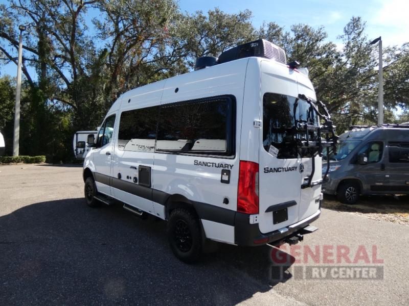 Inside, you'll find a thoughtfully designed interior that maximizes every inch of space. The Sanctuary comfortably sleeps two, offering a cozy retreat after a day of adventure. Enjoy the convenience of a fully equipped kitchenette, complete with a refrigerator, microwave, and stovetop, allowing you to prepare your favorite meals on the go. The well-appointed bathroom ensures you have all the comforts of home, no matter where your journey takes you. With ample storage solutions, you can bring along all your essentials without compromising on space.