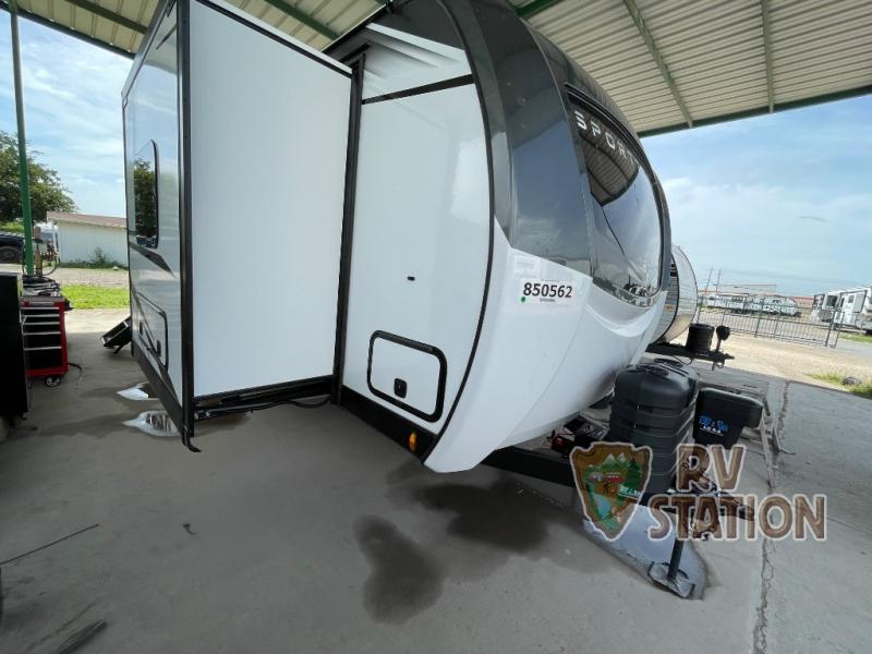 This model features two spacious slide-outs, significantly enhancing the living space and providing a roomy interior that can comfortably accommodate up to five people. The intelligently designed floor plan includes a well-appointed kitchen, complete with modern appliances and ample storage, allowing you to prepare meals with ease. The living area is designed for relaxation, featuring plush seating and entertainment options that make it a perfect retreat after a day of exploration.