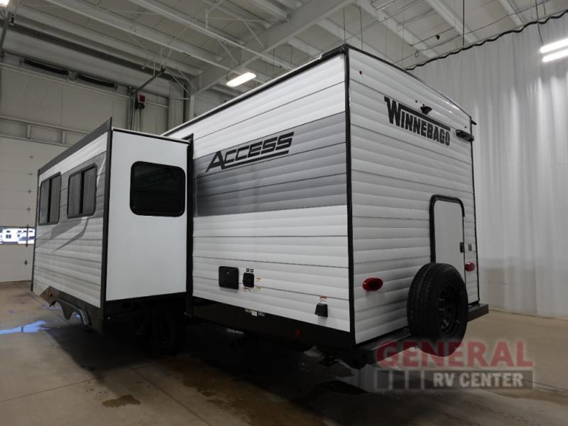 The Winnebago Access 30BH features a single slide-out, ingeniously expanding the living area to create a welcoming and open environment. This travel trailer can comfortably accommodate up to seven people, making it perfect for family trips or group excursions. The interior is thoughtfully designed with high-quality materials and finishes, ensuring a cozy and inviting atmosphere. The well-appointed kitchen, complete with modern appliances, allows for convenient meal preparation, while the spacious sleeping quarters provide restful nights after a day of exploration.