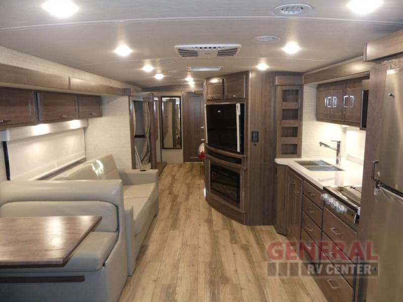 Step inside and be amazed by the spacious interior, thanks to its three slide-outs that create an expansive living area. The Forza 38W comfortably sleeps up to seven people, making it ideal for family adventures or trips with friends. The well-appointed kitchen is equipped with modern appliances, ensuring you can whip up your favorite meals with ease. Relax in the cozy living area or enjoy a good night's sleep in the plush sleeping quarters. Every detail has been thoughtfully designed to provide a home-away-from-home experience.