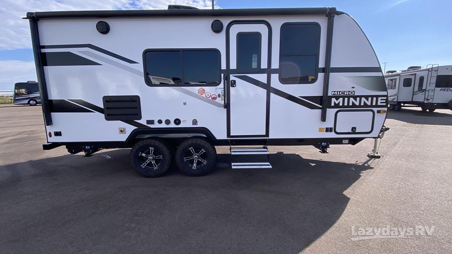 The interior of this travel trailer is thoughtfully designed to maximize space and functionality. Featuring one slide-out, the Micro Minnie 2108FBS offers a generous living area that enhances your comfort during your travels. The well-appointed kitchen is equipped with high-quality appliances, ample storage, and a stylish dining area, making meal preparation a pleasure. The cozy sleeping quarters ensure restful nights, while the contemporary bathroom facilities provide all the comforts of home. Every detail in this travel trailer is crafted to meet the highest standards of quality and durability.