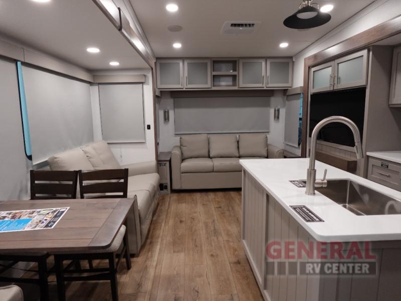 The Avenue 32RLS features three slide-outs, significantly expanding the living area to ensure maximum comfort and convenience. Inside, you'll find a well-appointed interior that can comfortably sleep up to four people, making it perfect for family adventures or a getaway with friends. The thoughtful layout includes a spacious living area, a fully equipped kitchen, and a cozy sleeping space, all designed with high-quality materials and finishes that reflect the Alliance RV commitment to excellence.