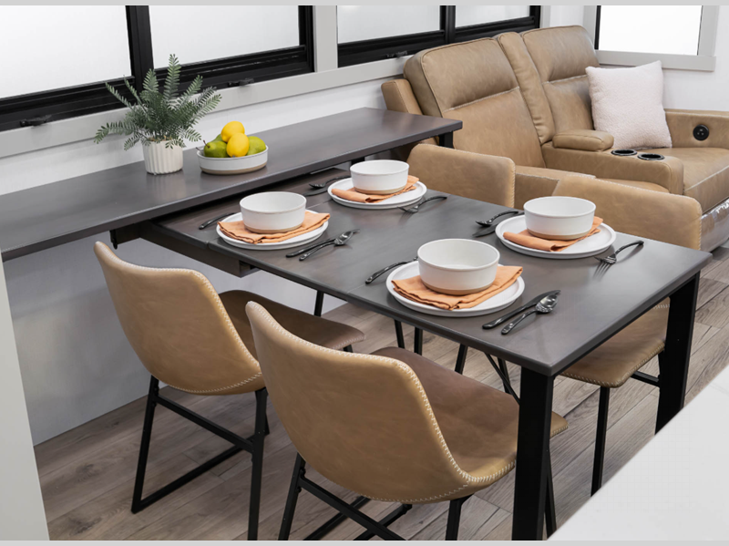 This RV boasts three spacious slide-outs, giving you plenty of room to stretch out and relax. Whether you're lounging in the living area or cooking up a storm in the kitchen, you'll appreciate the extra space. It comfortably sleeps four, making it ideal for family getaways or trips with friends. At 38 feet long, this Fifth Wheel offers a perfect balance of space and maneuverability, ensuring you can explore even the trickiest of campsites with ease.
