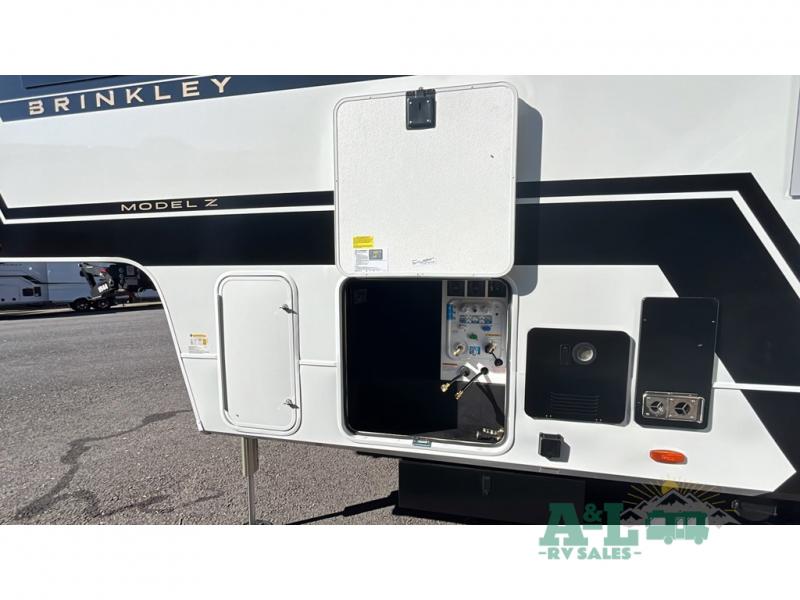 The Brinkley Model Z 2680 features a single slide-out that significantly enhances the living area, creating a spacious and inviting environment for relaxation and entertainment. Inside, you'll find accommodations for up to four people, making it ideal for small families or couples who enjoy traveling with friends. The interior is thoughtfully designed with high-quality materials and finishes, ensuring a comfortable and stylish living space that feels like home, no matter where your journey takes you.