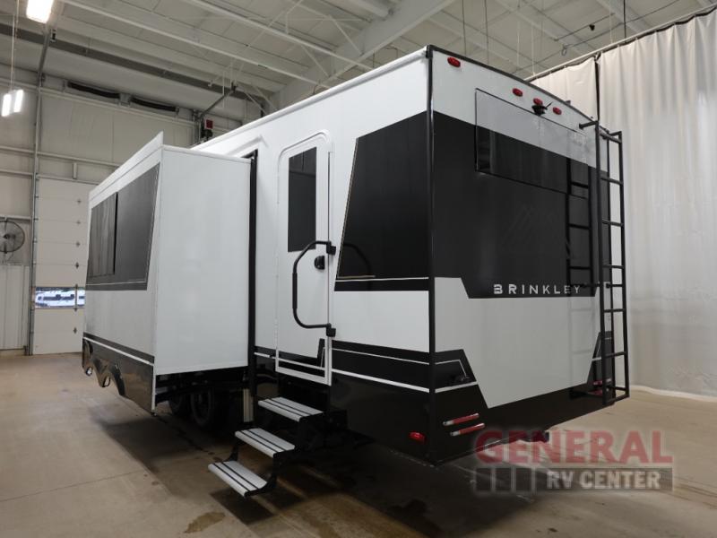 The Brinkley Model Z 2810 features a single slide-out, ingeniously expanding the living space to provide ample room for relaxation and entertainment. Accommodating up to seven sleepers, this fifth wheel is ideal for family vacations or group excursions. The interior is thoughtfully designed with high-quality materials and finishes, ensuring a luxurious experience. The well-appointed kitchen, complete with modern appliances, allows for convenient meal preparation, while the cozy living area provides a perfect setting for unwinding after a day of exploration.