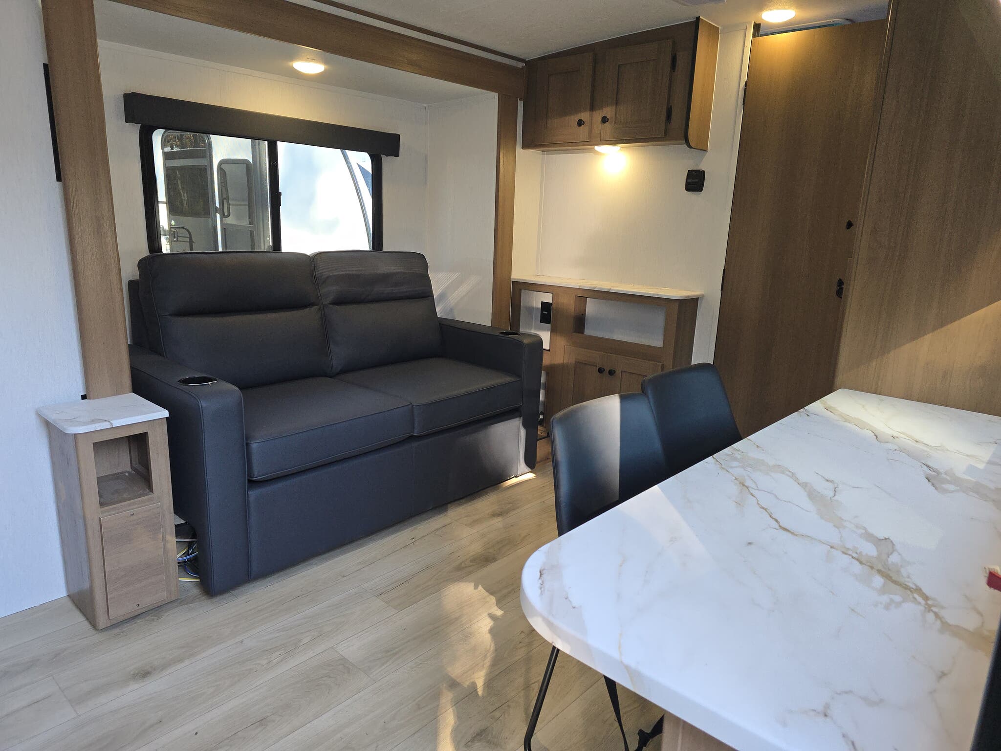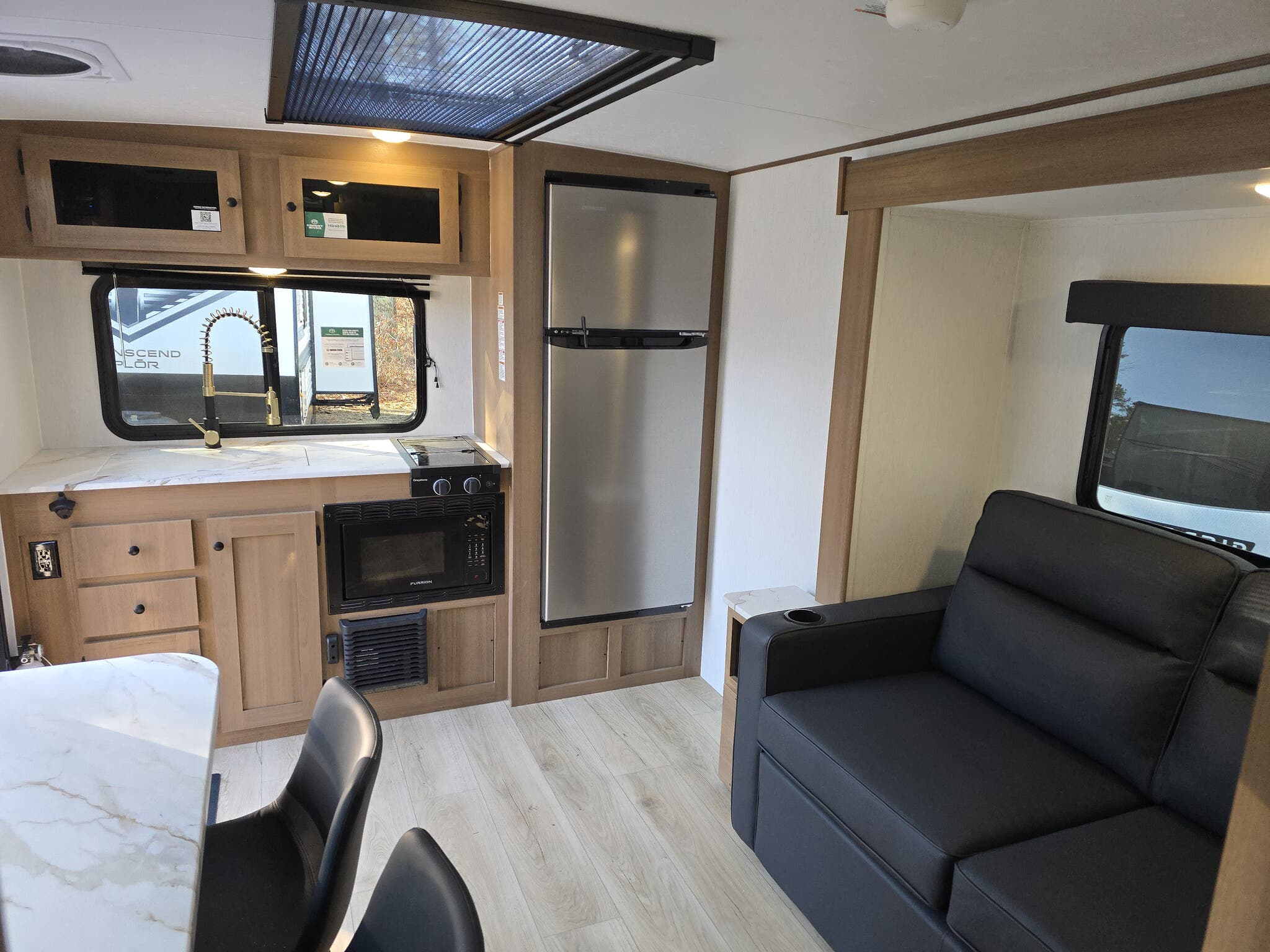 The Apex Nano 216RKS features a well-thought-out floor plan that includes a single slide-out, enhancing the living space to ensure a comfortable experience. Inside, you'll find accommodations for up to three people, making it perfect for small families or couples seeking adventure. The interior is designed with functionality in mind, offering a cozy sleeping area, a fully equipped kitchen, and a comfortable seating arrangement. The efficient use of space ensures that you have everything you need for a relaxing journey.