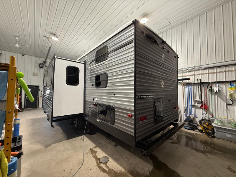 Step inside to find a spacious interior that comfortably sleeps up to eight people, making it ideal for family trips or group adventures. The well-appointed kitchen features a refrigerator, microwave, and stove, ensuring you can whip up your favorite meals on the road. The cozy dinette and plush seating area provide the perfect spot for dining or unwinding after a day of exploration. Plus, the private master bedroom offers a peaceful retreat with a comfortable bed and plenty of storage.