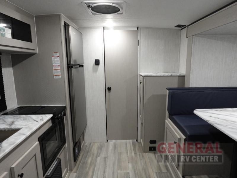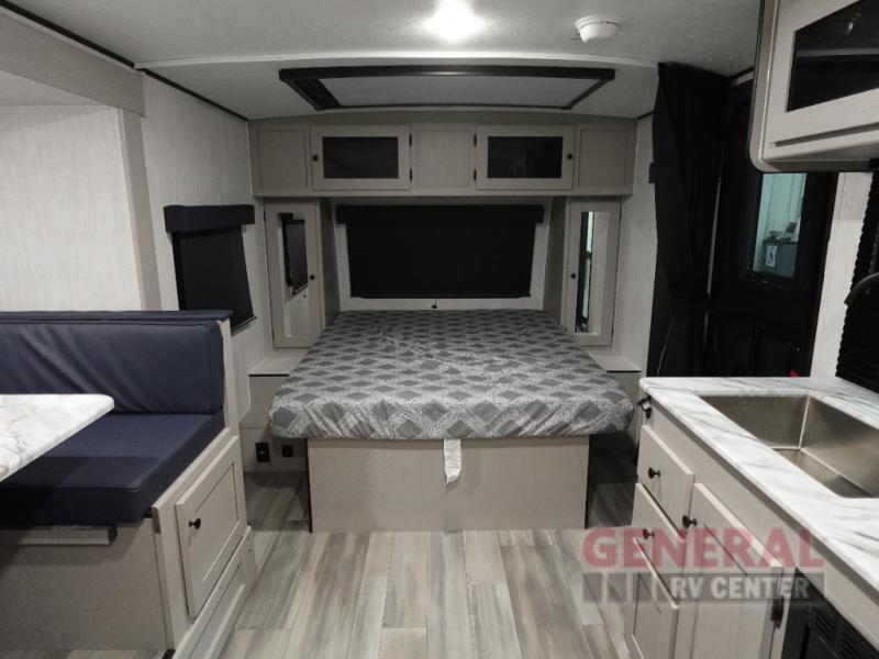 This travel trailer features one slide-out that expands your living space, offering a cozy yet spacious interior. It comfortably sleeps up to three people, making it perfect for small families or couples looking for a getaway. The well-thought-out floor plan includes a comfy sleeping area, a fully-equipped kitchenette, and a compact bathroom, ensuring you have all the comforts of home while on the road. Plus, with a weight of just 1,906 kilograms, it's lightweight enough to be towed by most mid-sized vehicles.