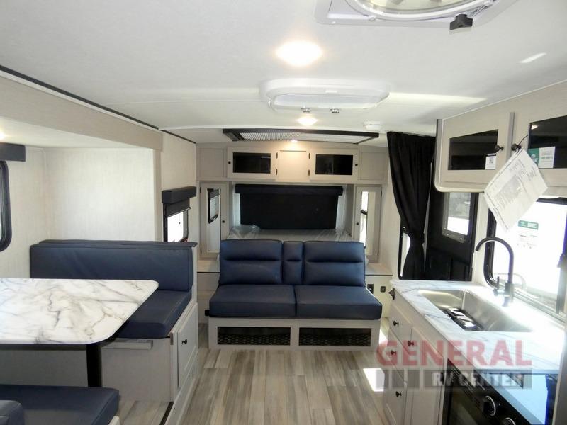 Measuring approximately 21 feet in length, the Apex Nano 208BHS is compact enough for easy towing, yet spacious enough to accommodate up to seven sleepers comfortably. The smart use of space is highlighted by a single slide-out, which expands your living area, providing ample room for relaxation and entertainment. Inside, you'll find cozy sleeping arrangements, including bunk beds, a convertible dinette, and a queen-sized bed, ensuring everyone has a snug spot to rest after a day of adventure.