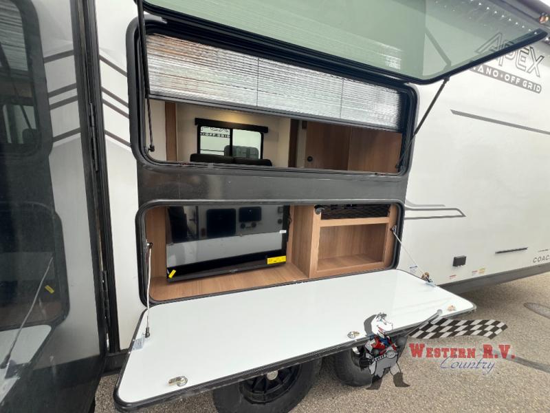 Weighing in at approximately 2,071 kilograms, the Apex Nano is lightweight yet robust, making it easy to tow and maneuver. Its clever design includes a single slide-out, providing extra space where it matters most. Inside, you'll find a cozy and inviting living area, perfect for relaxing after a day of exploration. The well-equipped kitchen features modern appliances and ample storage, ensuring you can whip up your favorite meals with ease. The comfortable sleeping quarters promise restful nights, while the stylish bathroom offers all the conveniences of home.