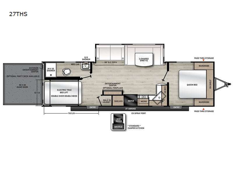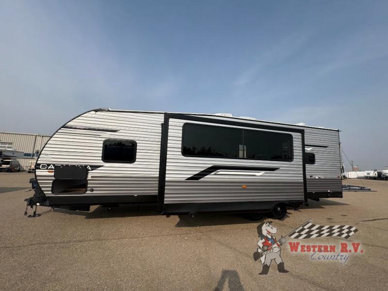The Catalina Trail Blazer 27THS features one expertly designed slide-out, significantly enhancing the living area to ensure maximum comfort for all occupants. This model is thoughtfully configured to accommodate up to nine sleepers, making it perfect for family trips or group excursions. The interior is designed with high-quality materials and finishes, providing a luxurious and inviting atmosphere. Whether you're unwinding after a day of adventure or hosting friends, this RV offers the perfect setting for relaxation and entertainment.