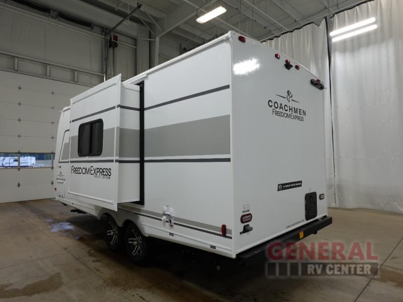 The Freedom Express Select 19SE features a single slide-out that expands your living space, providing a cozy and inviting atmosphere. It comfortably sleeps up to three people, making it perfect for couples or small families. The interior is thoughtfully designed with modern amenities and efficient use of space, ensuring you have everything you need for a comfortable journey. The kitchen is equipped with essential appliances, while the seating area offers a relaxing spot to unwind after a day of exploration.