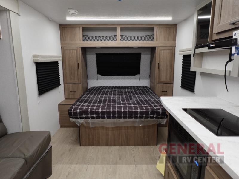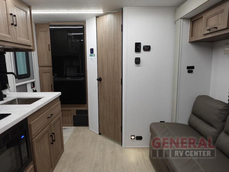 Step inside to find a cleverly designed interior that maximizes space and functionality. The single slide-out expands your living area, providing ample room to relax and unwind after a day of adventure. With sleeping accommodations for up to three people, this travel trailer ensures everyone has a cozy spot to rest. The well-appointed kitchen features modern appliances, making meal preparation a breeze, while the inviting dinette offers the perfect spot to enjoy your culinary creations or plan your next destination.