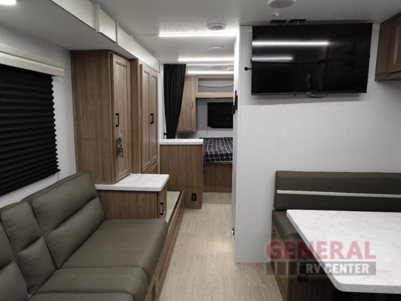The Freedom Express Select 247SE features one strategically placed slide-out, enhancing the living space to ensure maximum comfort. This travel trailer can comfortably accommodate up to four people, making it an excellent choice for small families or couples seeking a cozy getaway. The interior is thoughtfully designed with modern amenities and high-quality finishes, ensuring a home-like atmosphere on the road. The efficient layout includes a well-appointed kitchen, a comfortable sleeping area, and a stylish bathroom, all designed to meet your needs while traveling.