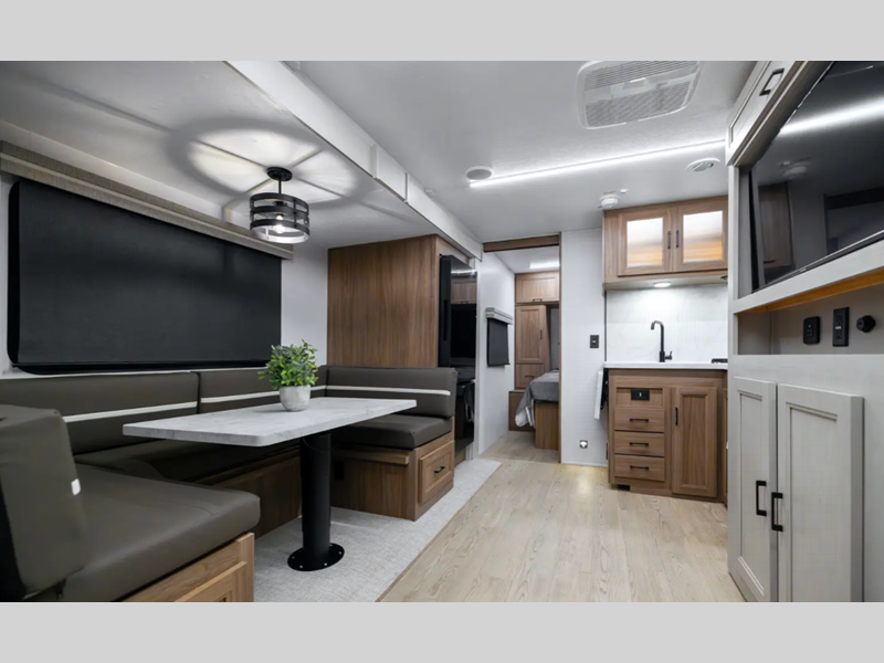 The Freedom Express Ultra Lite 258BHS is engineered to sleep up to 8 people, making it an ideal choice for family vacations or group outings. The intelligently designed floor plan includes a master bedroom with a queen-sized bed, double bunk beds, and convertible sofa and dinette areas, ensuring everyone has a cozy place to rest. The interior is thoughtfully appointed with modern amenities, including a fully equipped kitchen with a refrigerator, microwave, and stove, as well as a bathroom with a shower, providing all the comforts of home on the road.