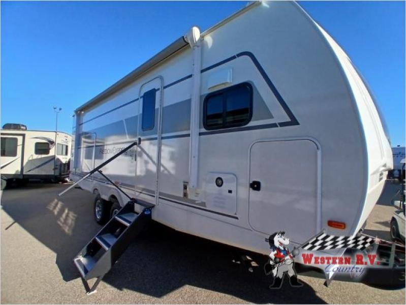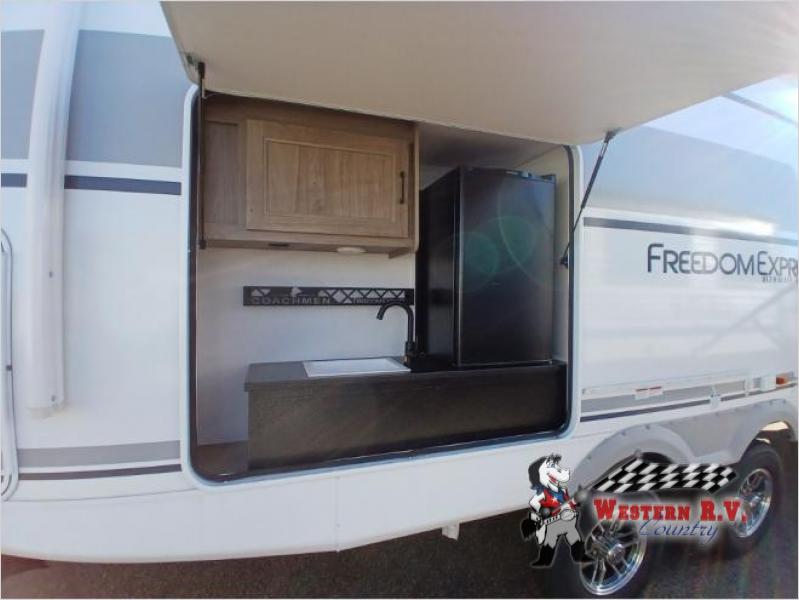The Freedom Express Ultra Lite 259FKDS features two strategically placed slide-outs, enhancing the interior space to create a roomy and inviting atmosphere. This model comfortably accommodates up to four people, making it an excellent choice for both short getaways and extended trips. The intelligently designed floor plan includes a front kitchen, providing a well-equipped culinary space with modern appliances and ample storage. The cozy living area is perfect for relaxation, featuring plush seating and entertainment options to ensure a comfortable stay.