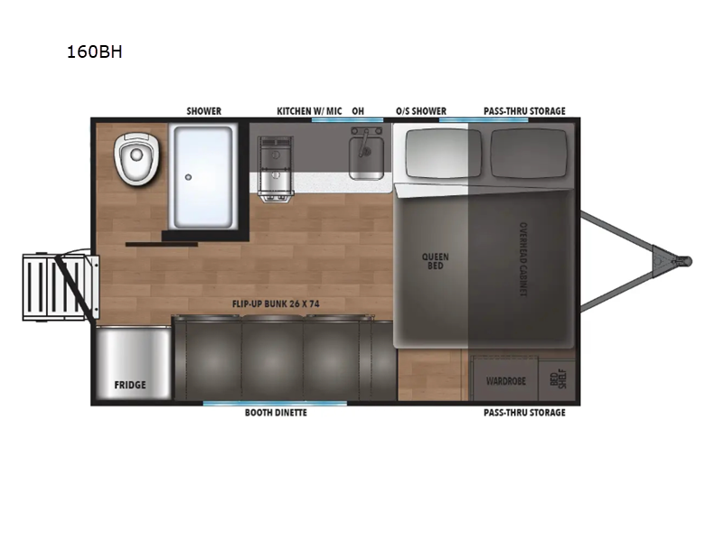 Measuring approximately 13 feet in length, the Northern Spirit Compact 160BH is easy to tow and maneuver, ensuring a stress-free travel experience. With a weight of just 1,414 kilograms, this lightweight trailer is compatible with a variety of vehicles, allowing you to hit the road with ease. Despite its compact size, the interior is cleverly designed to maximize space and comfort, offering all the amenities you need for a home away from home.