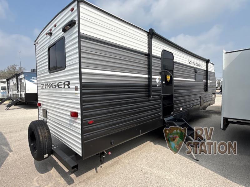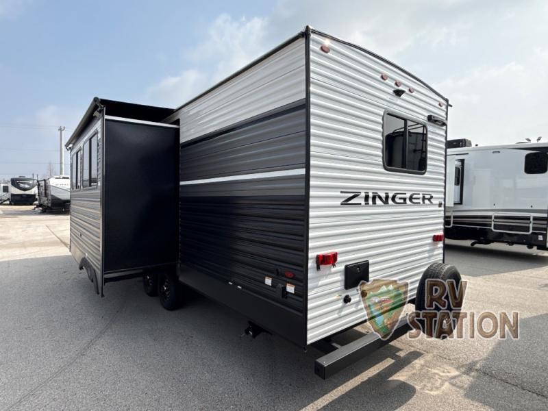 Inside, the Zinger 280RB comfortably accommodates up to five people, making it ideal for family getaways or trips with friends. The intelligently designed floor plan maximizes space and utility, ensuring that every inch is utilized efficiently. The interior boasts high-quality finishes and furnishings, providing a cozy and luxurious environment. Whether you're preparing meals in the well-equipped kitchen or unwinding in the comfortable sleeping quarters, this travel trailer ensures a pleasant and enjoyable experience.