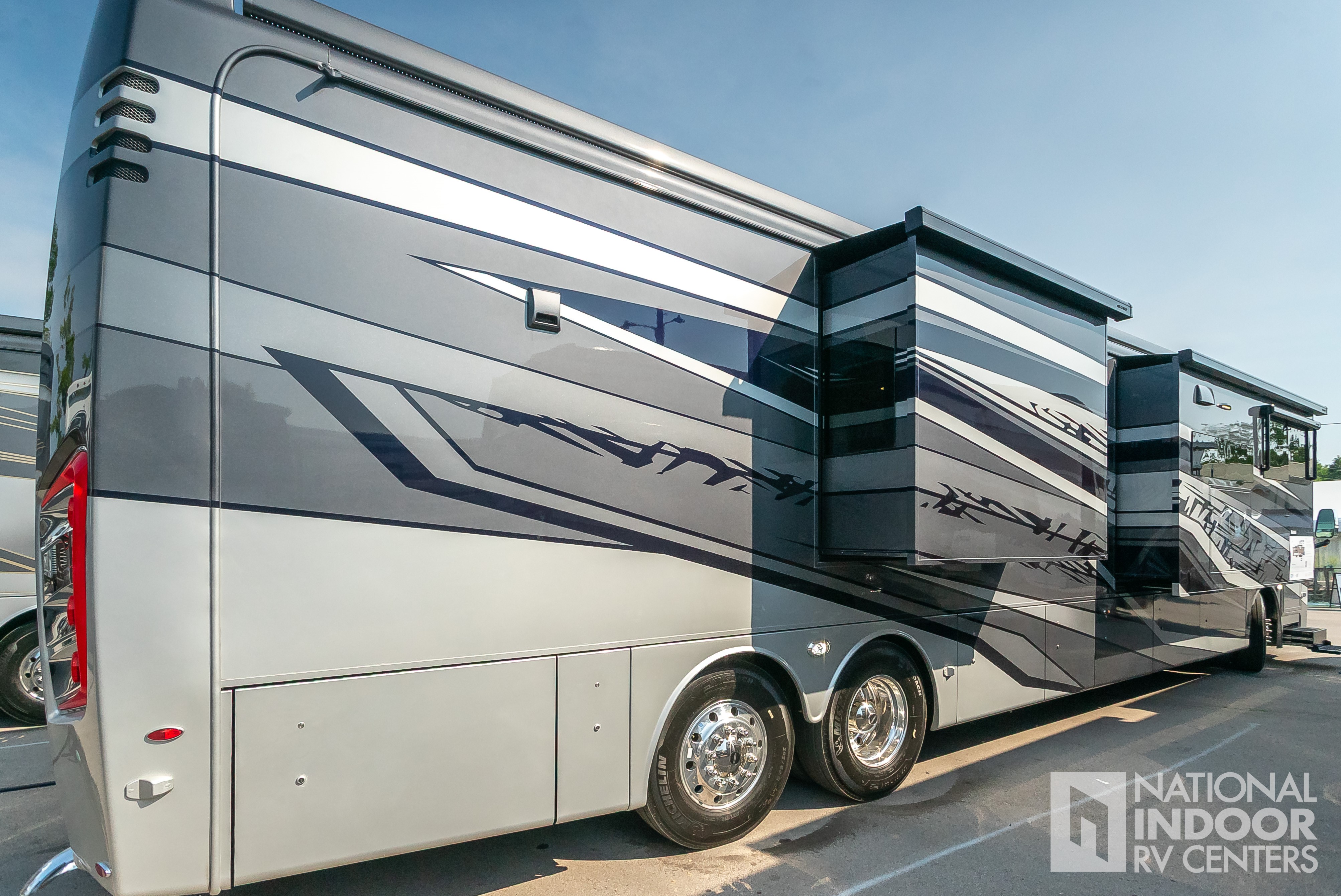 This impressive motorhome features four slide-outs, providing expansive living space that transforms your travel experience into a home-like atmosphere. The interior is thoughtfully designed with high-quality materials and finishes, ensuring both comfort and durability. Whether you’re entertaining guests or enjoying a quiet evening, the spacious layout accommodates all your needs with ease. The Aspire 44V is equipped with state-of-the-art amenities, including a fully equipped kitchen, luxurious sleeping quarters, and a modern entertainment system, making it perfect for long trips or weekend getaways.