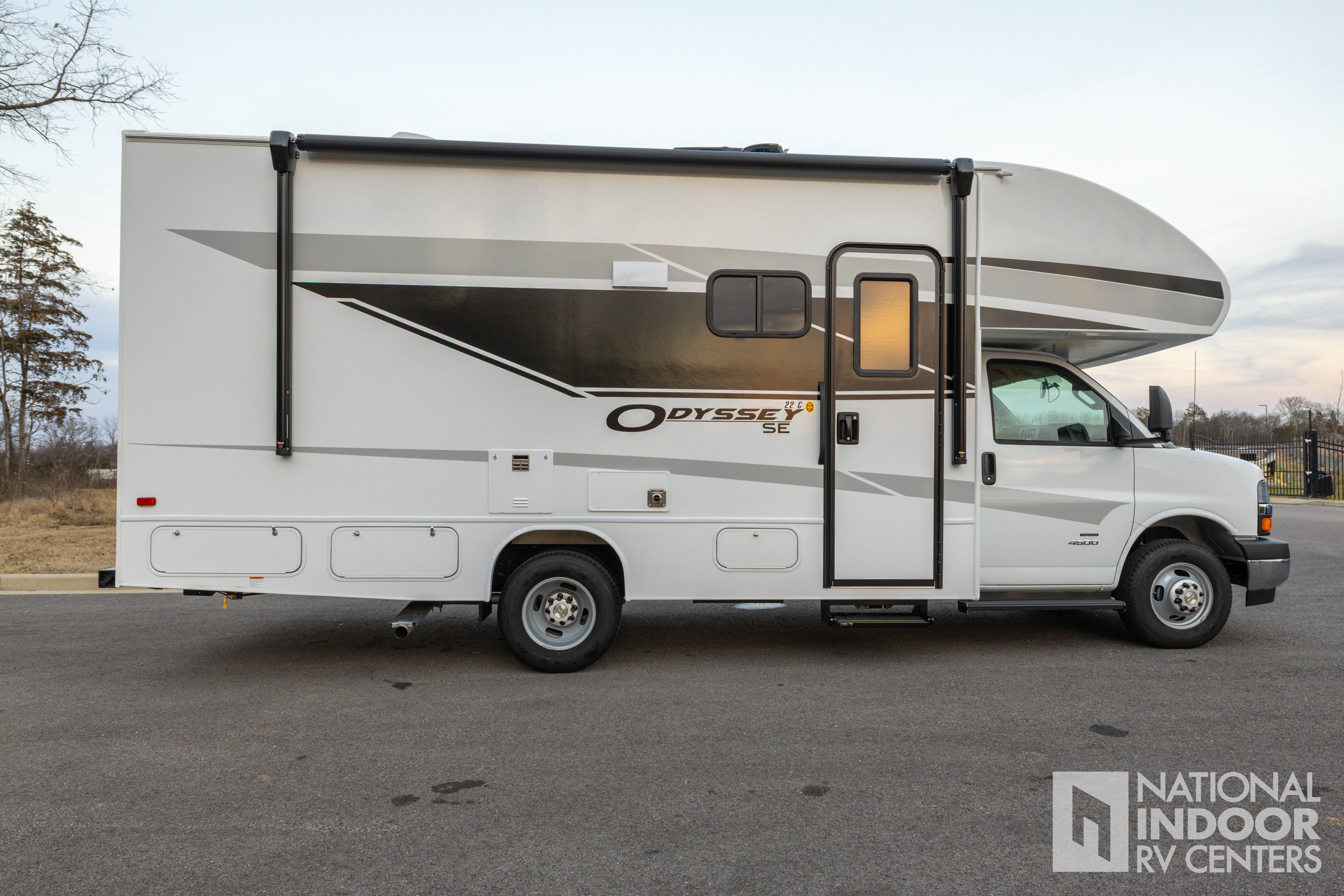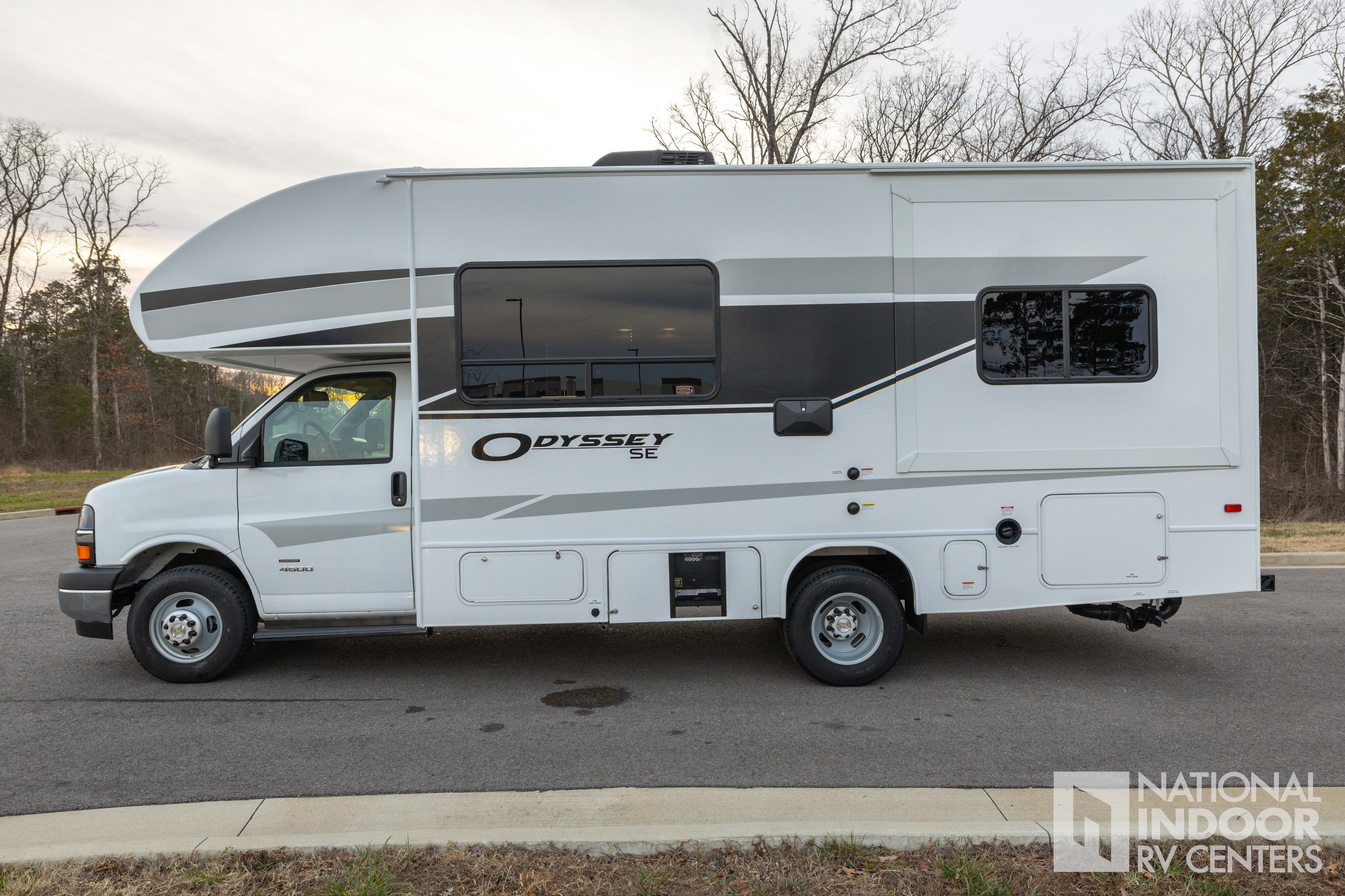 The Odyssey SE 22CF features a single slide-out, expanding your living area to create a roomy and inviting environment. Inside, you’ll find a thoughtfully designed interior with high-quality finishes and modern amenities. The well-equipped kitchen includes a refrigerator, microwave, and a three-burner cooktop, making meal preparation a breeze. The cozy sleeping quarters are designed for relaxation, ensuring a restful night's sleep after a day of exploration. The bathroom is complete with a shower, sink, and toilet, providing all the conveniences of home.