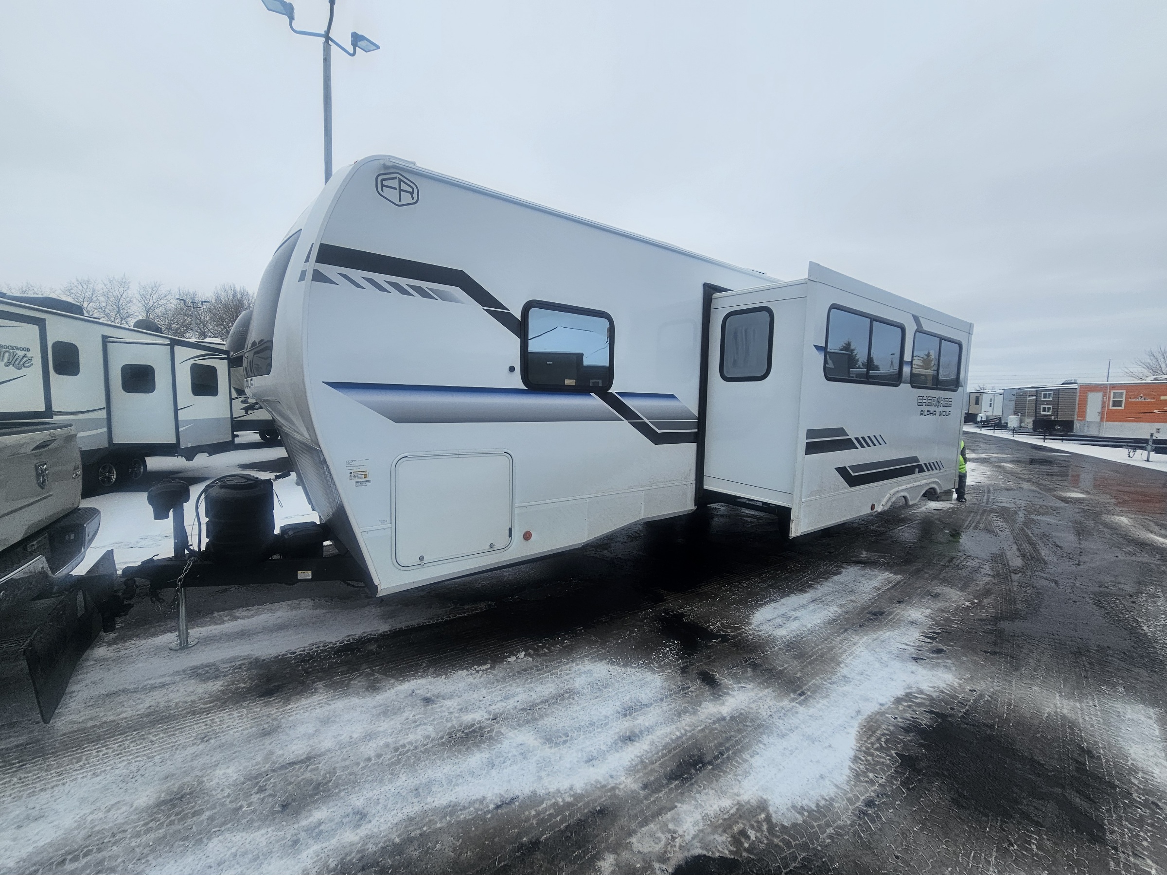 Measuring approximately 27 feet in length, the Alpha Wolf 26DBH-L is expertly crafted to maximize living space while remaining easy to tow. Weighing in at just 3,008 kilograms, it strikes the perfect balance between durability and maneuverability, making it an ideal choice for both seasoned travelers and RV newcomers. The thoughtfully designed floor plan can comfortably sleep up to 10 people, making it perfect for family vacations or group getaways. Enjoy the convenience of a fully equipped kitchen, a cozy living area, and a spacious bathroom, all designed with your comfort in mind.