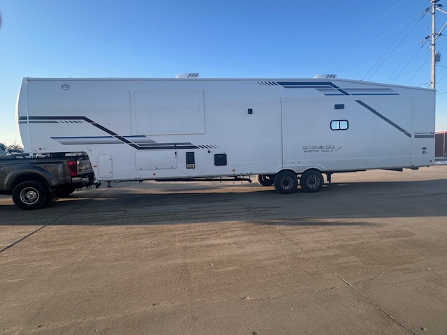 Measuring approximately 36 feet in length, the Arctic Wolf provides ample space for relaxation and entertainment. Inside, you'll find comfortable sleeping accommodations for up to four people, making it ideal for families or couples seeking a cozy retreat. The thoughtfully designed interior features modern amenities and high-quality finishes, ensuring a luxurious experience wherever you roam.