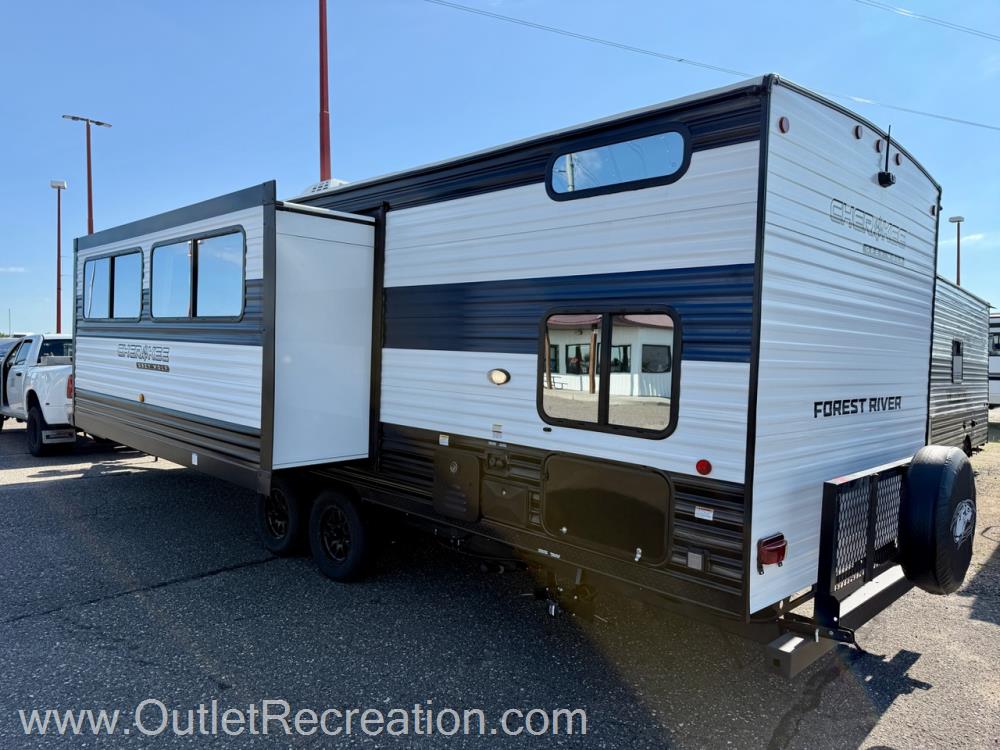 Inside, the Cherokee Grey Wolf can comfortably sleep up to 10 people, ensuring everyone has a cozy spot to rest after a day of exploration. The well-thought-out floor plan includes a fully equipped kitchen, a comfortable dining area, and a welcoming living space, all designed to make you feel right at home. Whether you're cooking up a feast or enjoying a movie night, this travel trailer has everything you need to create lasting memories with your loved ones.