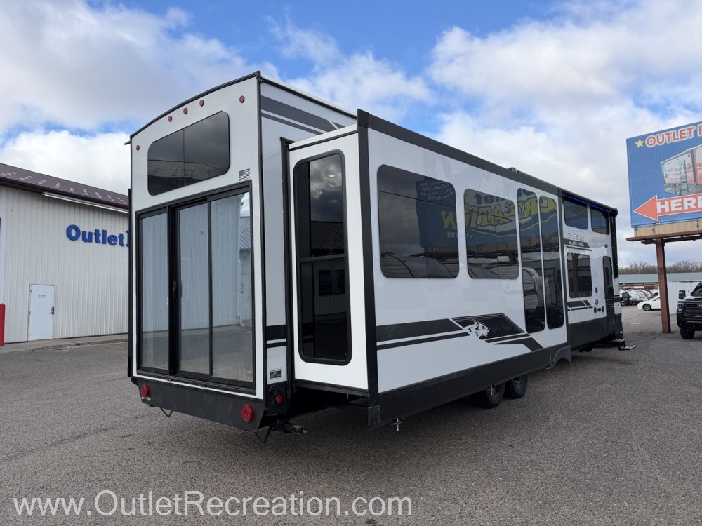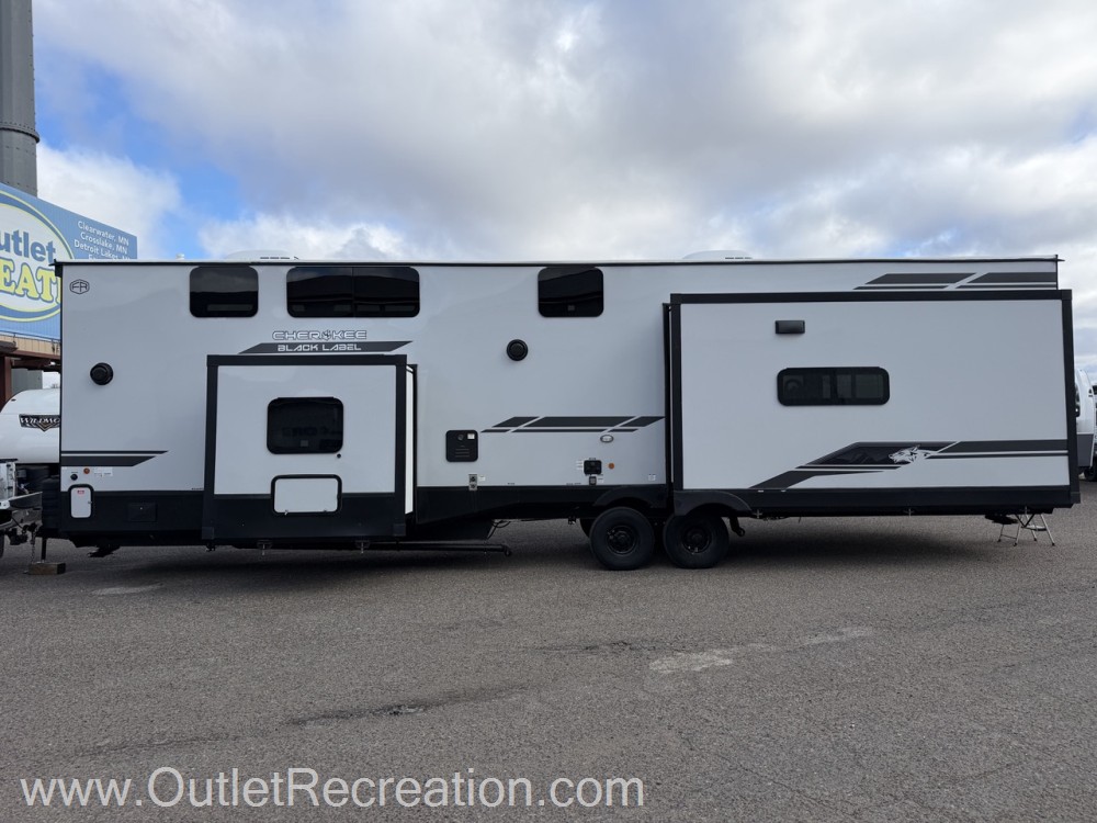 Introducing the 2026 Forest River Cherokee Timberwolf 39JMBL Park Model, a perfect blend of comfort and functionality for your next adventure. This spacious RV is designed to accommodate up to 8 people, making it ideal for family trips or group getaways. With three slide-outs, the Timberwolf offers ample living space, ensuring everyone has room to relax and enjoy the journey.