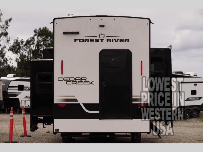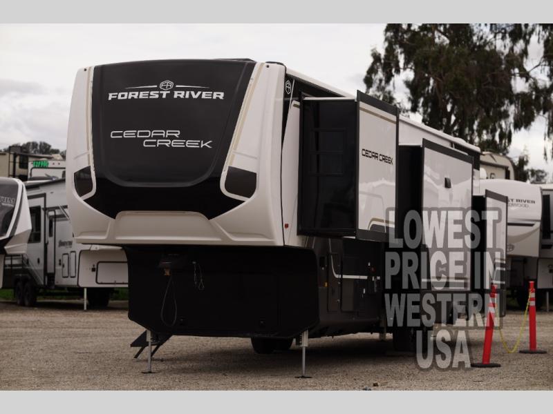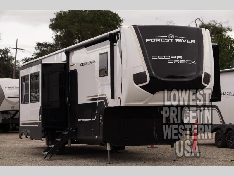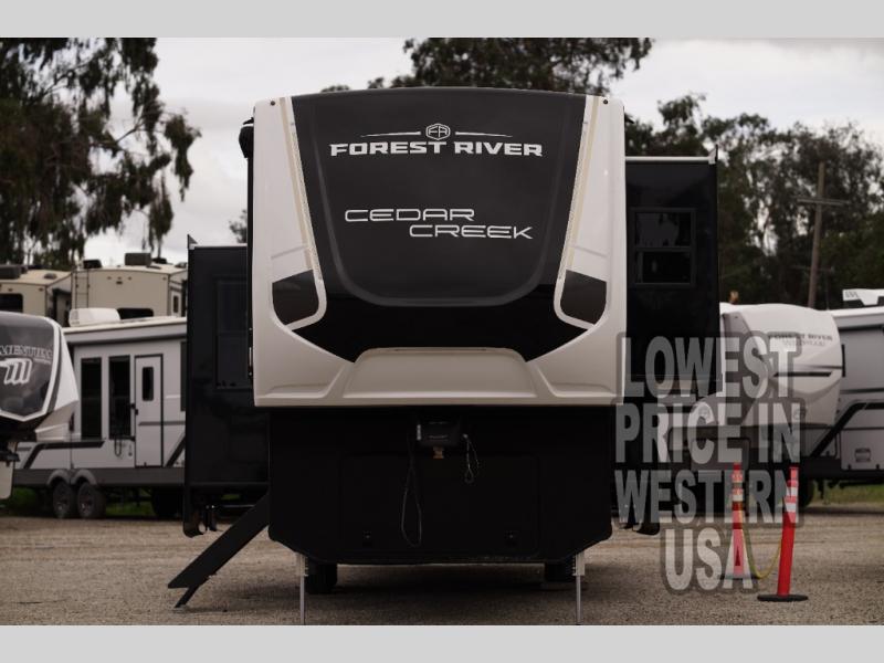 Discover the ultimate in comfort and luxury with the 2026 Forest River RV Cedar Creek 38DB Fifth Wheel. Perfect for family adventures or a cozy getaway with friends, this spacious RV is designed to make every journey memorable. With four slide-outs, it offers an expansive living area that ensures everyone has room to relax and enjoy. Whether you're setting up camp in the mountains or by the beach, this RV is your home away from home.