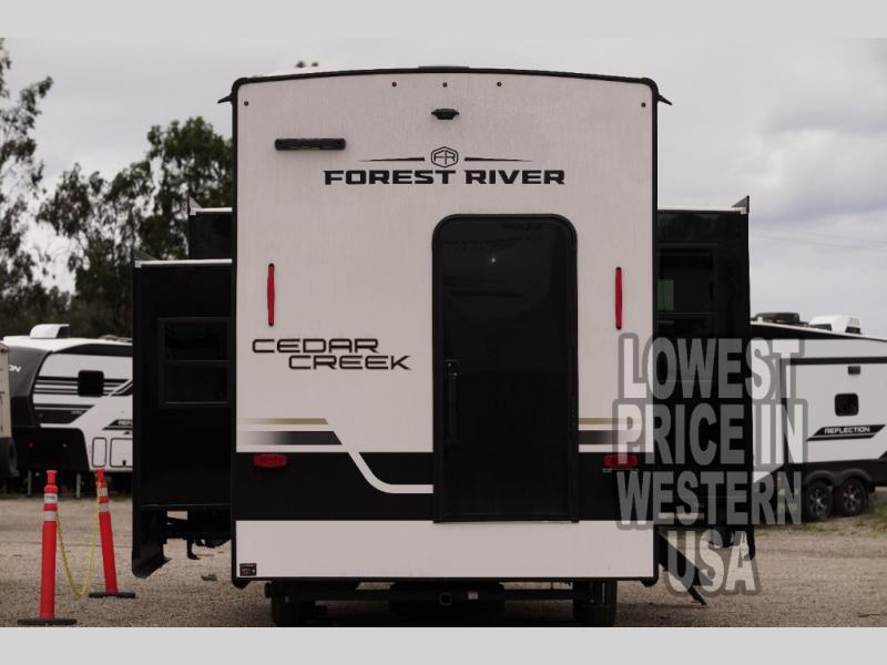 Introducing the 2026 Forest River RV Cedar Creek 38DB Fifth Wheel, a luxurious and spacious mobile retreat designed for the discerning traveler. This exceptional RV offers an unparalleled blend of comfort, style, and functionality, making it the perfect choice for families or groups seeking adventure without compromising on the comforts of home. With its impressive length of 36 feet and a weight of 6,676 kilograms, this fifth wheel is engineered for stability and ease of towing, ensuring a smooth journey to your desired destinations.