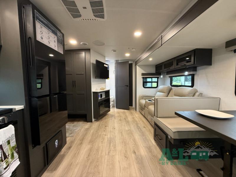 This travel trailer features two spacious slide-outs, giving you plenty of room to stretch out and relax. Whether you're lounging in the living area or preparing a meal in the well-equipped kitchen, you'll appreciate the thoughtful layout and modern amenities. The RV comfortably sleeps three, making it perfect for couples or small families looking to explore the great outdoors without giving up the comforts of home.