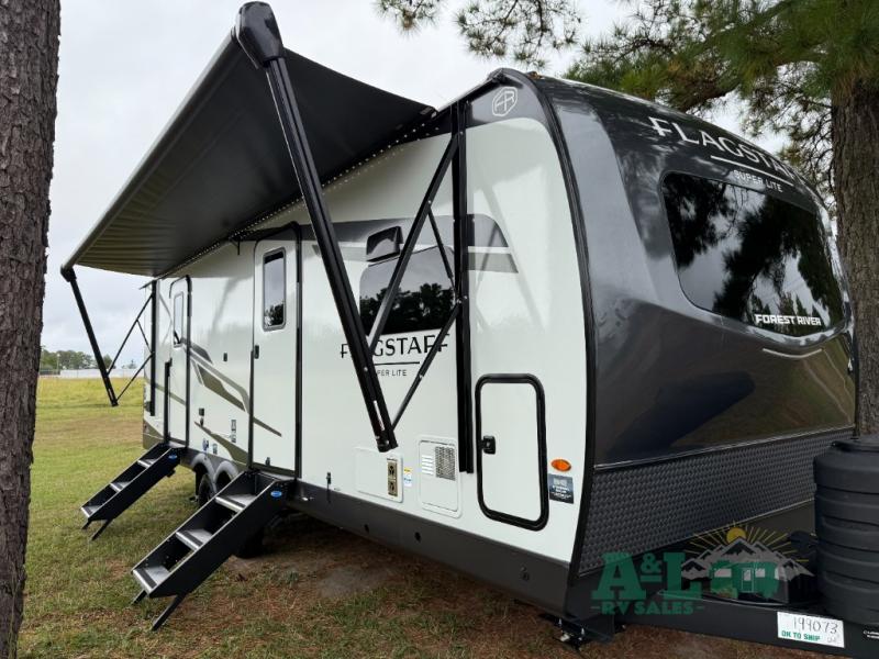 Inside, you'll find a cozy sleeping area, a fully functional kitchen with all the essentials, and a stylish bathroom to freshen up after a day of adventure. The interior is designed with comfort in mind, featuring quality finishes and ample storage space for all your gear. Whether you're planning a weekend getaway or an extended road trip, this Forest River Flagstaff Super Lite is ready to make your travels unforgettable. Don't miss out on the chance to own this fantastic travel trailer—your next adventure awaits!