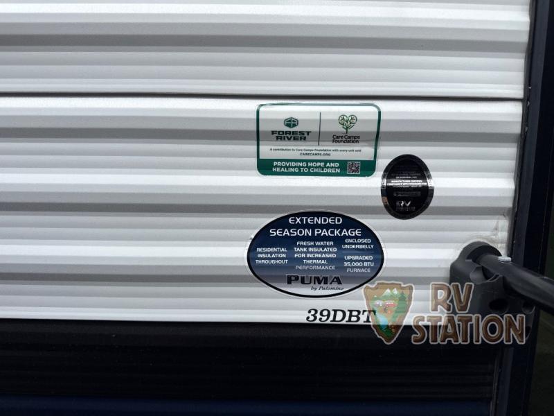 Discover the ultimate in comfort and adventure with the 2026 Palomino Puma 39DBT Travel Trailer! This stunning RV is your perfect home on wheels, offering a spacious and luxurious retreat for families and travel enthusiasts alike. Measuring an impressive 39 feet in length, this travel trailer is designed to provide ample space for all your needs while still being easy to tow and maneuver.