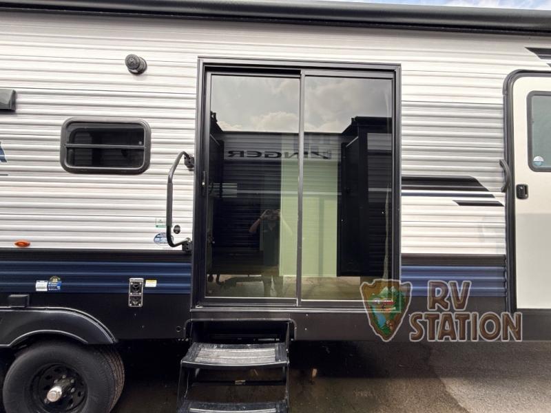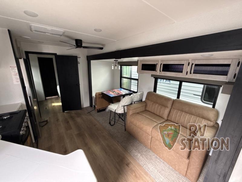 Step inside and be greeted by a beautifully designed interior that boasts a modern and cozy atmosphere. The Puma 39DBT features two bedrooms, making it ideal for families or groups. The master suite offers a plush queen-sized bed, while the second bedroom includes bunk beds, ensuring everyone has their own comfortable space. The living area is equipped with a large sofa and a dinette, perfect for relaxing or entertaining guests. The fully-equipped kitchen comes with a refrigerator, microwave, and a three-burner stove, making meal preparation a breeze. With a total of two bathrooms, including a full bath with a shower, you'll have all the conveniences of home wherever you roam.