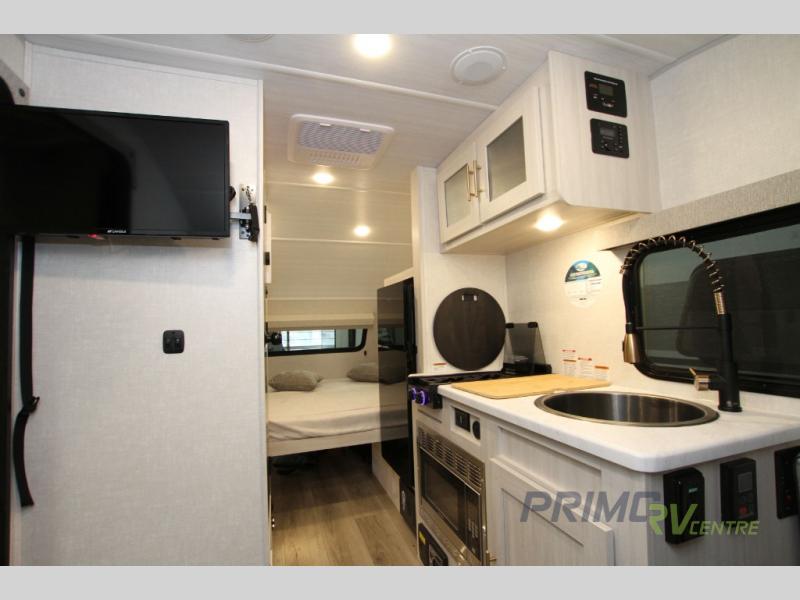 Weighing in at just 1,148 kilograms, this lightweight travel trailer is easy to tow, allowing you to venture to your favorite destinations with ease. Despite its compact size, the R Pod RP-171 is packed with features that maximize space and functionality. Inside, you'll find a well-appointed interior with a comfortable sleeping area, a fully equipped kitchenette, and a compact yet efficient bathroom. The thoughtful layout ensures that every inch of space is utilized, providing you with all the amenities you need for a comfortable stay.