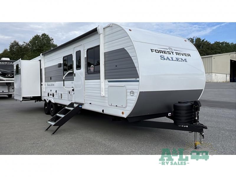 Discover the ultimate in comfort and convenience with the 2026 Forest River RV Salem 31KQBTS Travel Trailer. This spacious RV is designed to accommodate your entire family and friends, comfortably sleeping up to eight people. With three slide-outs, this travel trailer offers an expansive interior that ensures everyone has their own space to relax and enjoy.