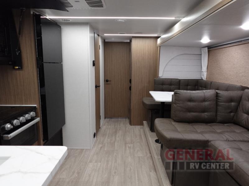 This travel trailer boasts a spacious slide-out, creating extra room for everyone to relax and enjoy. With the ability to sleep up to 9 people, it's perfect for family trips or a weekend getaway with friends. The smart layout ensures everyone has their own space, with cozy sleeping arrangements that include a versatile bunk area and a private master bedroom. The interior is modern and stylish, with all the amenities you need to make your travels comfortable and enjoyable.