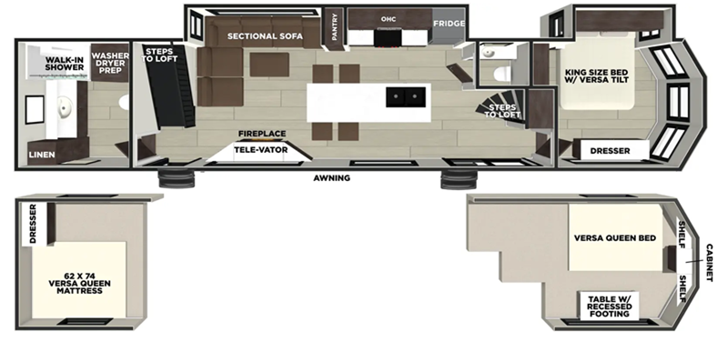 The Salem Grand Villa 44ZEN is thoughtfully designed to accommodate up to eight people, making it ideal for family adventures or group getaways. The interior layout is crafted to maximize comfort and functionality, featuring a well-appointed kitchen, a cozy living area, and multiple sleeping arrangements. The master bedroom offers a tranquil retreat, while additional sleeping spaces ensure everyone has a comfortable place to rest. High-quality materials and finishes throughout the RV create an inviting atmosphere that feels like home.